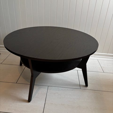 Rundt sofabord/salongbord/settbort fra Nordform (nå AC Design Furniture) selges. Pent brukt, ikke synlige bruktmerker. Det lille bordet kan skyves under det store ved behov.