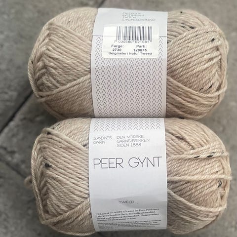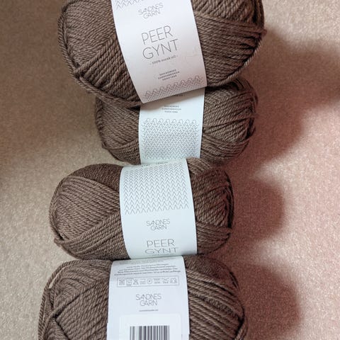 2 nøster Peer Gynt garn i brun farge 3161, partinummer 0107025