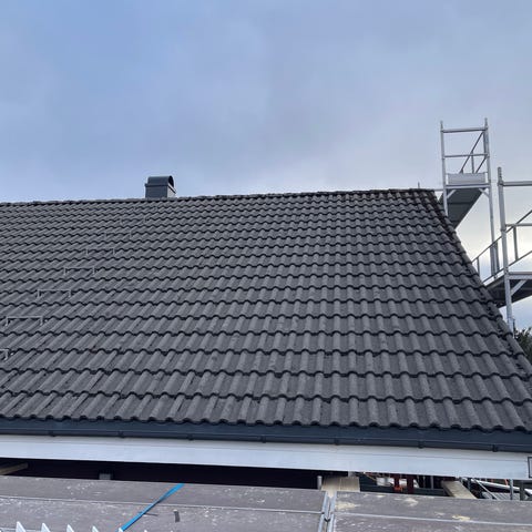Takstein i skifergrå farge. Egnet som taktekking på bolig eller hytte. Taksteinen gir et tradisjonelt uttrykk og passer til skråtak, som vist på bildene.