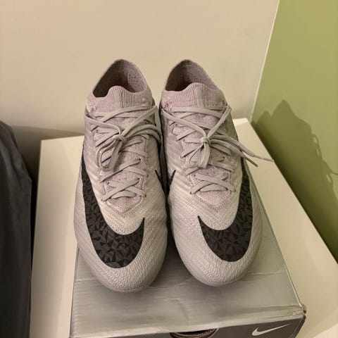 Nike Zoom replika fotballsko i hvit, grå og svart farge. Størrelse 41 Overdel i syntetisk materiale med snøring foran. Yttersåle med FG knotter Leveres med tilhørende Nike-trekkpose med trykket tekstmotiv.