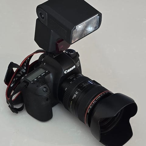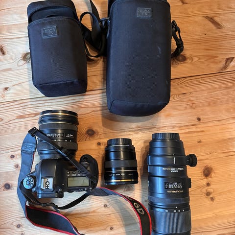 Svært pent behandlet og lite brukt Canon EOS 6D fullformatkamera selges. Ikke noe slitasje å se - verken på skjerm eller øvrig kamerahus. Kameraet ligger i sin originale emballasje og det medfølger Canon EF 24-70mm f/4L IS normalzoom, som er i svært god stand. I tillegg kabler, to stk. batterier, batterilader, 64gb minnekort og ekstra øyemusling. Jupio batterigrep medfølger også.