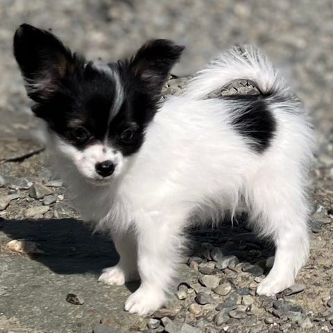 Han er en 8 måneder gammel, NKK-registrert (NO47148/25) papillon født 14 juli med mange fine egenskaper. Han er miljøsterk, nysgjerrig og glad i tur i all slags vær. Like trygg i byen som i skogen. Han er sosial med mennesker, lite lydsensitiv og generelt en trygg og nysgjerrig liten hund. Han er veldig mat- og lekemotivert, veldig smart og lærevillig. Må få bruke hodet sitt.