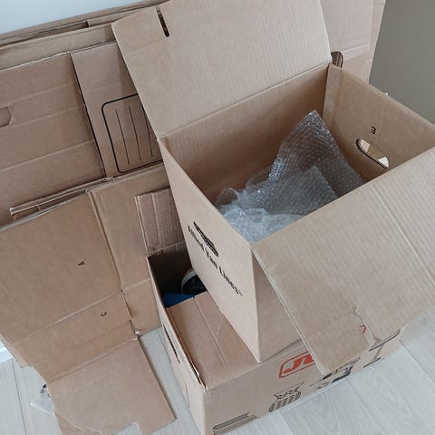 Tre pent brukte flytteesker fra Clas Ohlson gis bort. To large og en medium. Hentes på St.Hanshaugen
