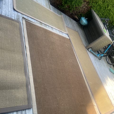Pent brukt og i god stand.Teppe har en naturlig og slitesterk sisalstruktur som passer fint i gang, stue eller andre områder med mye bruk.