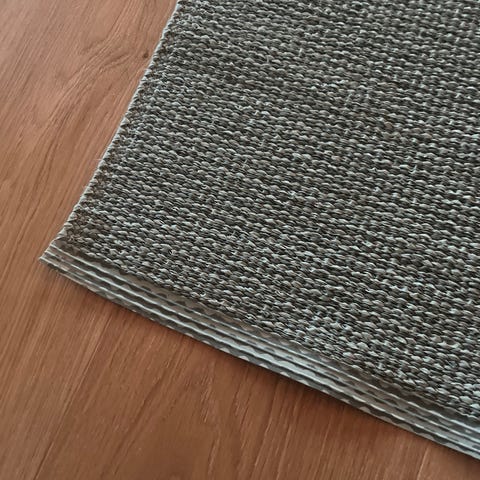 Merk: Den ene kanten har bøyd seg litt (se bilde), men dette påvirker ikke bruken og kan ofte rette seg ut ved bruk eller når teppet ligger flatt.