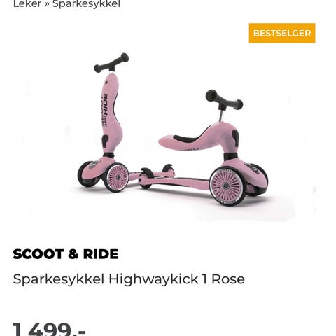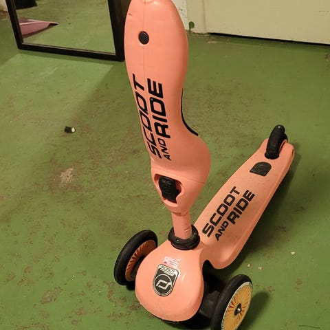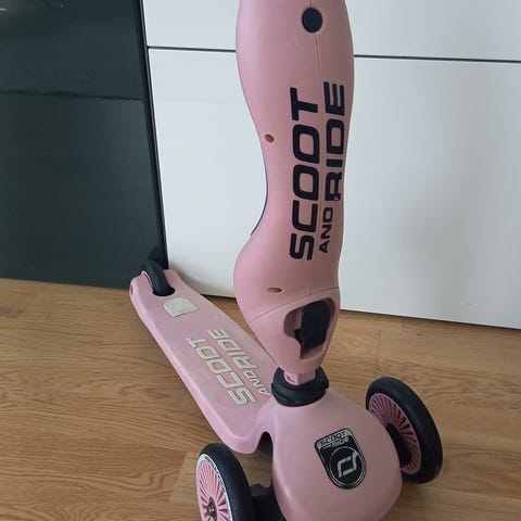 Godt brukt sparkesykkel i fargen rose. Kjøpt ny av oss på Sprell. Synlig bruksmerker, men fungerer som den skal.