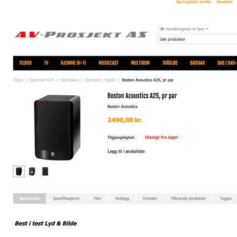 I tillegg følger det med en Wharfedale Valdus center‑høyttaler, men tweeteren i centeren fungerer ikke (resten virker).
