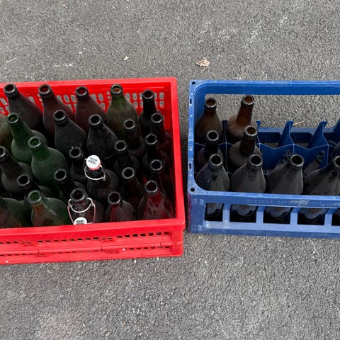 200+ flasker til ølbrygging gis bort mot henting. Rengjort før lagring, men er støvete.
