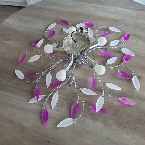 Rosa taklampe fra Habitat, 40 cm i diameter.