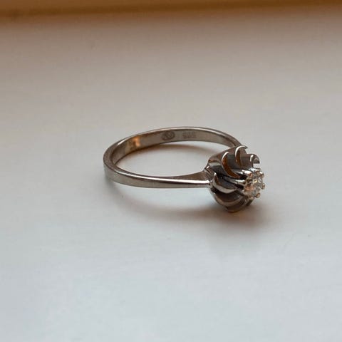 Enstens diamantring i hvitt gull str 52