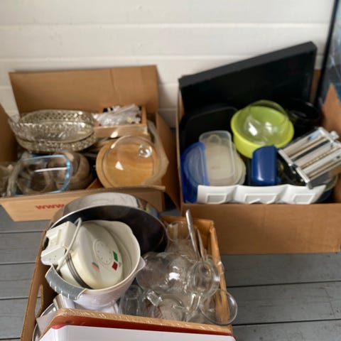 Se bilde. Husker ikke hva de er i kasssen. Må sikkert vaskes