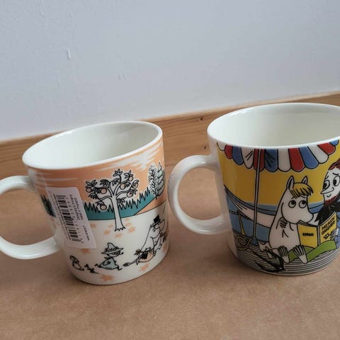 Alle kopper er nye med etikett. Selges til 2000 kr, må hentes. Mummidalsparken Japan 2019, Tove, Poeten og Havbris.