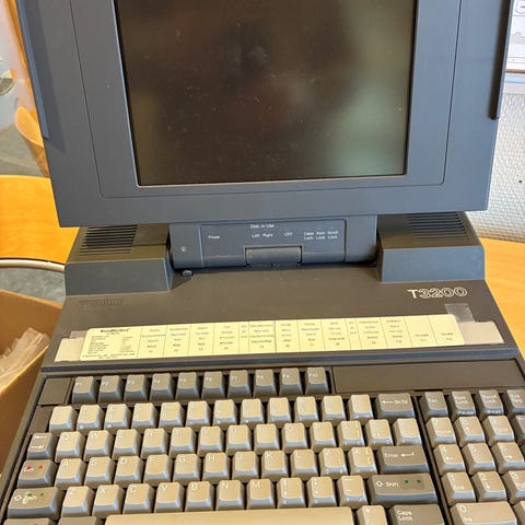 Selger en unik tidsmaskin fra tidlig 90-tall. Dette er en Unisys PowerPort NB-40 bærbar PC, en sjelden modell som var rettet mot forretningsmarkedet. Maskinen er utstyrt med den ettertraktede Intel i486SX SL-Enhancedprosessoren og har fargeskjerm, noe som var svært kostbart og eksklusivt på denne tiden.