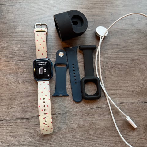 Komplett med ladeledning og originalt tilbehør. Kommer også med 2 originale reimer, som også er som nye:
