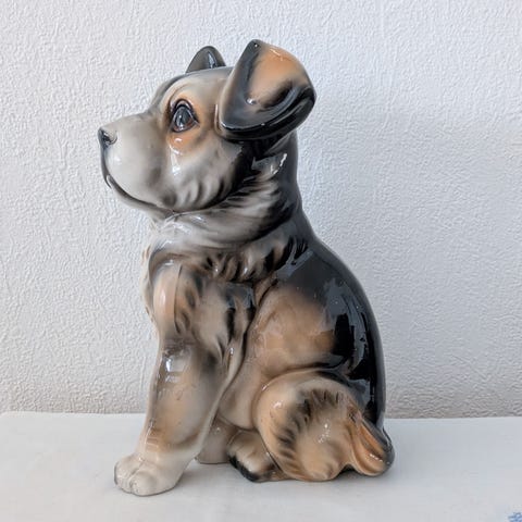 Flott figur i porselen av ein gutt med hund, fra ukjent produsent. Mest sannsynlig fra 50- eller 60-tallet. I veldig god stand.