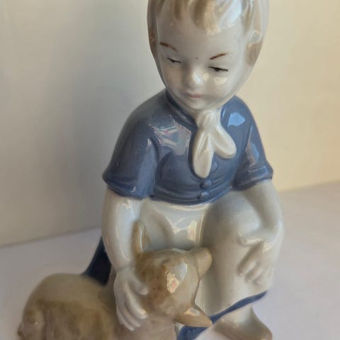 Porselensfigur - Gutt med hund