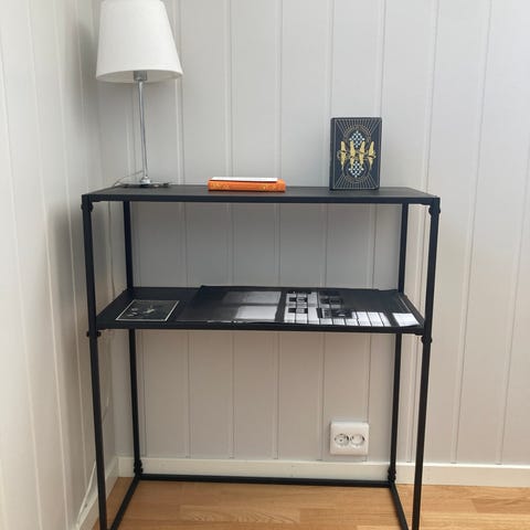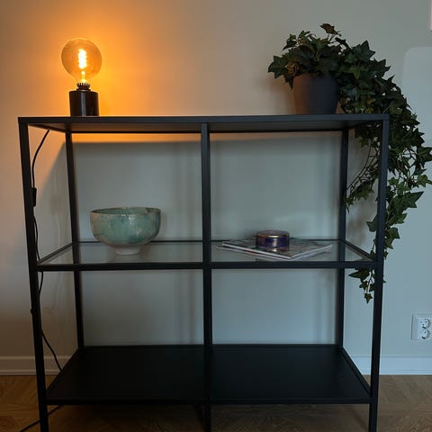 Selger en pent brukt IKEA hylle/sjenk. Midterste hylle er av glass.