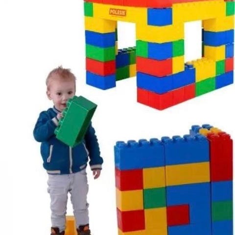 Veldig gøye, veldig store byggeklosser i hard plast. Selges da de er vokst fra dem her. Fremstår ikke synlig brukt. Kjøpt for ca tre år siden.