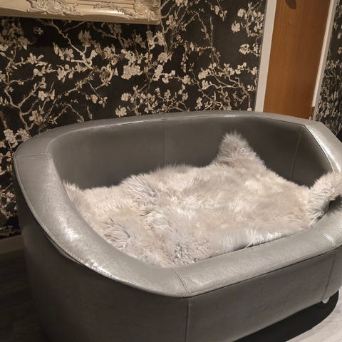 Puff/Krakk med setepute i lilla velour selges. Krakken har bare stått til pynt