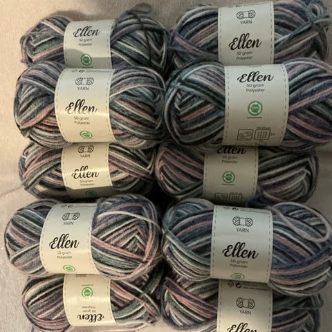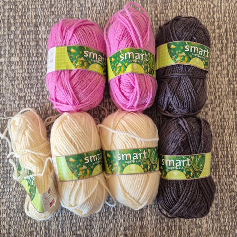 Sandnes Garn Smart garn i flerfargede nøster. Garnet er i ullkvalitet og egner seg til strikking av plagg og tilbehør som gensere, luer, votter og sokker. Nøstene har ulike melerte farger i grønne og beige/rosa toner. Etiketten viser standard vaske- og strikkeanvisninger med anbefalt pinnestørrelse og strikkefasthet, samt at nøstene veier 50 gram med en lengde på omtrent 100 meter per nøste.