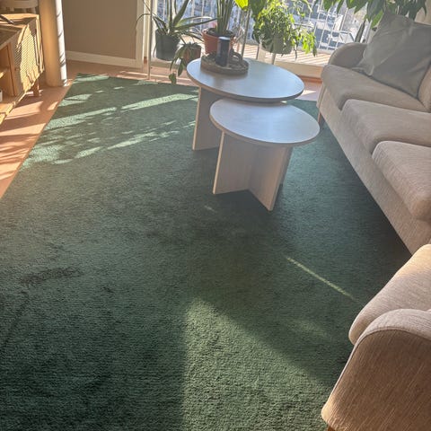 Ikke renset. Vært brukt i stue og på soverom. Hundefritt hjem.