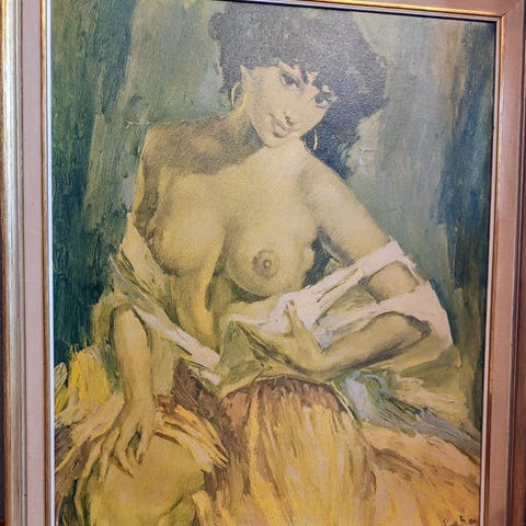 Auguste Renoir Syende dame veggbilde med gullfarget ramme