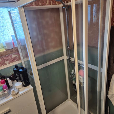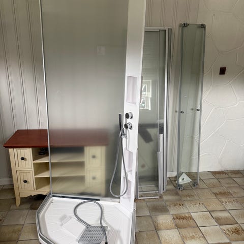 Dusjkabinett 90 x 90. Macro, svensk kvalitet. Det er demontert nu, men veldig enkelt å montere. Oras blandebatteri med tilkoblinger, bare å koble på vann. Klart glass. Bilde er av et annet montert kabinett. Nypris kr 15000 uten Oras!