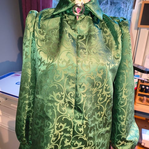 Retro jakke kan fint brukes til kjole eller jeans.Fine puffermer og detaljer.Finner ikke størrelse men virker som en L.