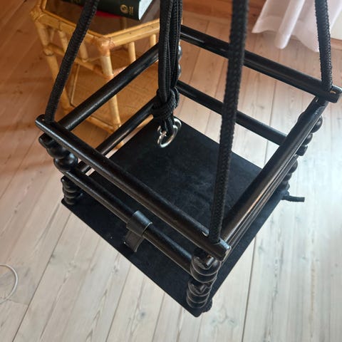 Svart robust baby huske til innendørsbruk i tre
