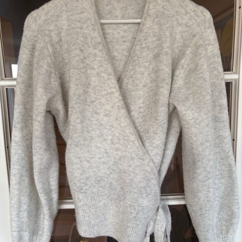 Klassisk cardigan, kan brukes til det meste. Kommer og trukne knapper.
