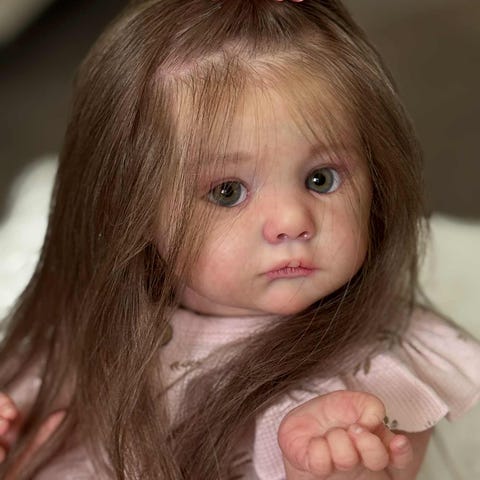 Jeg bruker "G. Heat Set" maling som må varmeherdes. Det er lagt ned mye arbeid for å få henne realistisk med hensyn til hudtoner, delikate detaljer og hudtekstur. Håret er monorotet (et og et hår stukket ned i vinylen med nål). Håret er av fin og myk mohair. Øynene er naturtro, mørkbrune glassøyne. Hun er vektet/fylt med fin glassgranulat, myk gummigranulat, plastgranulat og mykeste polyestervatt. Hun har i tillegg en fleksibel "ryggrad" fra hodet og ned et stykke i overkroppen.