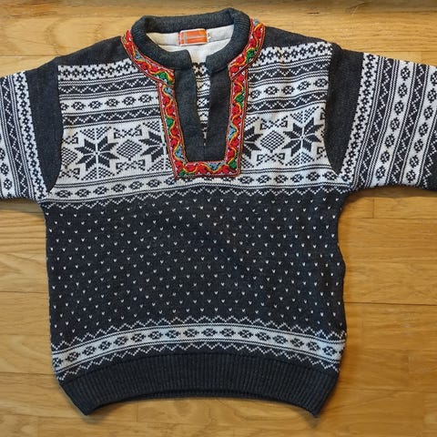 Ubetydelig brukt genser i ull med vindstopper fra Skjæveland
