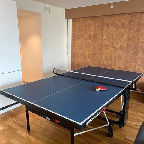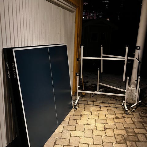 Bordet står i kjellerstue, men kan bæres rett ut på bakkeplan, så det er relativt enkelt å få ut.