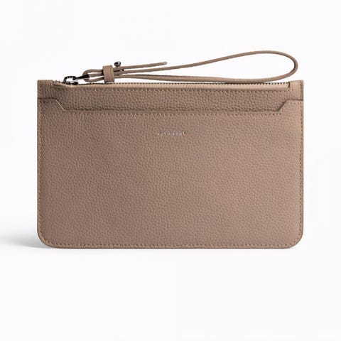 Camilla Pihl toalettmappe i lær for unisex. Mappen er laget i brunt, strukturert skinn med glidelåslukking øverst. Innvendig har den ett hovedrom som passer til toalettsaker, sminke eller småting på reise og hjemme. Kompakt størrelse som er enkel å ha i veske, bag eller koffert.