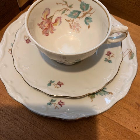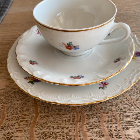 Gammelt service, til 4 personer. Like fint. Kr 50 for alt. Må hentes