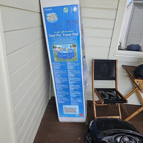Selger et basseng som kun har vært satt opp to ganger, svært lite og svært pent brukt. Har dessverre kun disse to bildene av bassenget da det har vært lagret siden 2022. Det er 1 meter høyt og 2 meter x 4 meter bredt. Det følger med vannstøvsuger og elektrisk varmer, litt usikker på modellen men ser ut som Bestway Basseng Elektrisk Varmer 2,8KW. Ta kontakt for spørsmål, holder til i Elverum men kan møtes mellom Elverum-Brumunddal.