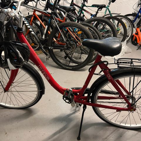 Selger en pen DBS City bysykkel i rødt. Sykkelen er i god stand med lite rust og slitasje, og er klar til bruk. Nye dekk og kjedekasse høst 2025. Da var sykkelen også på generell service. Har siden ikke vært brukt grunnet overgang til elsykkel. Sykkelen har vært oppbevart innendørs oppvarmet bod.