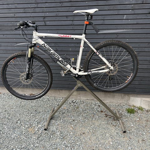 Feedback Sports sykkelstativ i grønn farge. Stativet er laget i metall og er utformet for å holde sykkelen stabilt ved oppbevaring eller enkel service. Passer til sykler som kan støttes opp ved bakaksel eller krankområde, avhengig av modell. Egnet til bruk i garasje, bod eller andre steder der sykkelen skal stå stødig og oppreist.