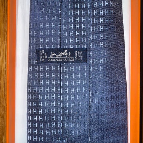 Blått Hermès slips Faconnee - som nytt. Eske, snøre, konvolutt og pose kan følge med mot tillegg.