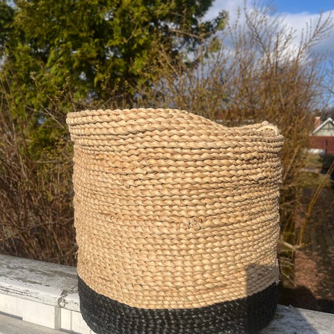 Kurv med lærhåndtak selges