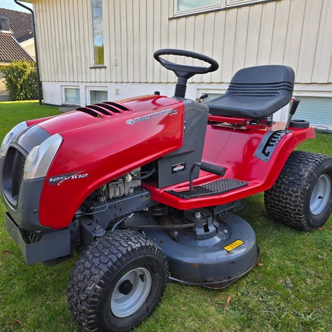 Går som en klokke, helt ny reim på klippeaggregatet, fersk oljeservice, starter lett og klipper jevnt med 97 cm bredde. Litt rust her og der og tørre dekk etter noen sesonger ute, men ellers i mekanisk i god stand.
