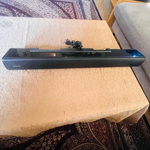 JBL soundbar med tilhørende trådløs subwoofer og flere løse høyttalere for surroundoppsett. Systemet består av en lang soundbar-enhet, en separat subwoofer og flere mindre høyttalere som kan plasseres rundt i rommet for mer omsluttende lyd. På baksiden av soundbaren finnes tilkoblinger som HDMI og andre innganger for tilkobling til TV og eksterne enheter. Egner seg som komplett hjemmekinoanlegg for TV- og filmtitting samt musikkavspilling.
