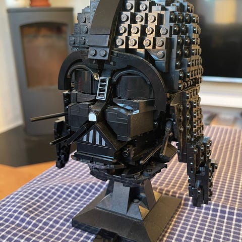 Lego Darth Vader-hjelm på display-stand