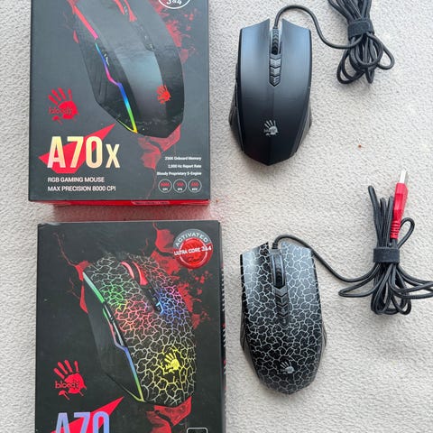 Selger et mekanisk gaming-tastatur med RGB sammen med en Trust RAVA gaming mus. Perfekt setup for gaming eller vanlig PC-bruk.