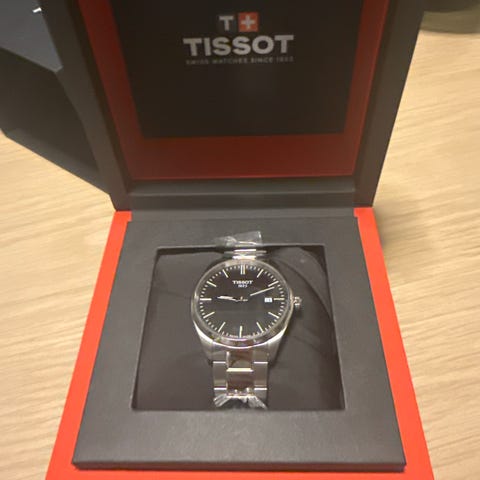 Tissot herreklokke med klassisk analogt ur. Klokken har rund urkasse og svart urskive med tydelige timemarkeringer. Lenken er i stål med leddet design og foldespenne. Leveres i original Tissot-eske slik som vist på bildene. Egner seg som hverdagsklokke og til mer formelle anledninger.