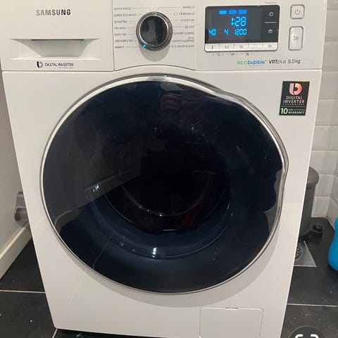 Selger en lite brukt Samsung vaskemaskin, modell WW95CGC04CAEE. Maskinen ble kjøpt i juni 2025 og fremstår som nesten som ny.