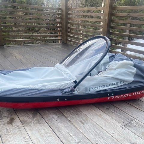 Selger en solid Fjellpulken barnepulk fra ca. 2008 med nyere drag og sele i pen brukt stand klar for påskefjellet.