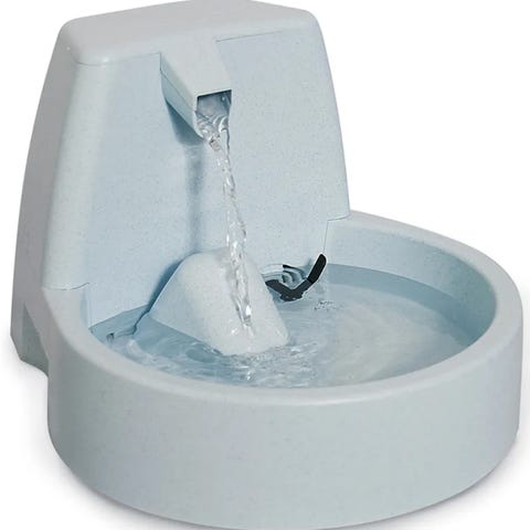 Trixie Vital Flow drikkefontene til katt og liten hund med kapasitet på 1,5 liter. Fontenen har kuppelformet topp i grå farge og skål i lysere tone. Vannet sirkulerer kontinuerlig og gir flere drikkeområder rundt kuppelen. Egnet for katter og små hunder. Drives med strøm via ledning. Materiale er hard plast. Fontenen kan plasseres på gulv innendørs og er beregnet for daglig tilgang til friskt vann for kjæledyr.