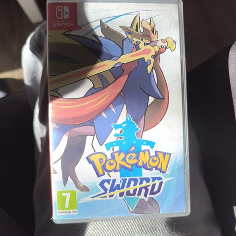 Nintendo Switch Pokémon Sword spill. Fysisk spillkassett i eske til Nintendo Switch-konsoll.