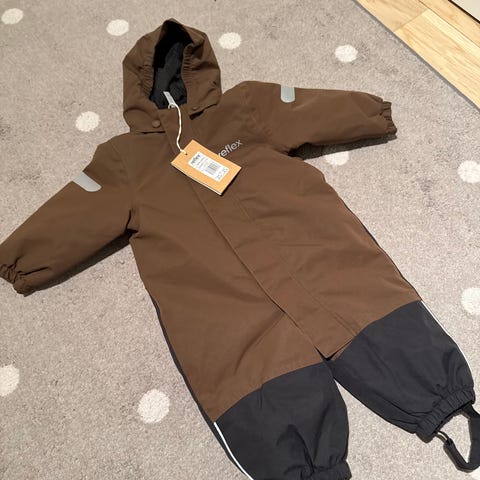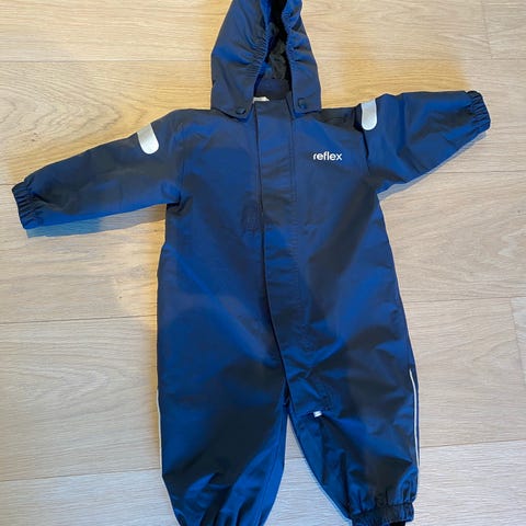 Reflex parkdress for barn i størrelse 74. Dressen er blå med mønster og har hette. Materialet er 100 % polyester. Modellen er unisex og passer både gutter og jenter. Parkdressen har strikk nederst på bena og elastikk ved håndledd for bedre passform.